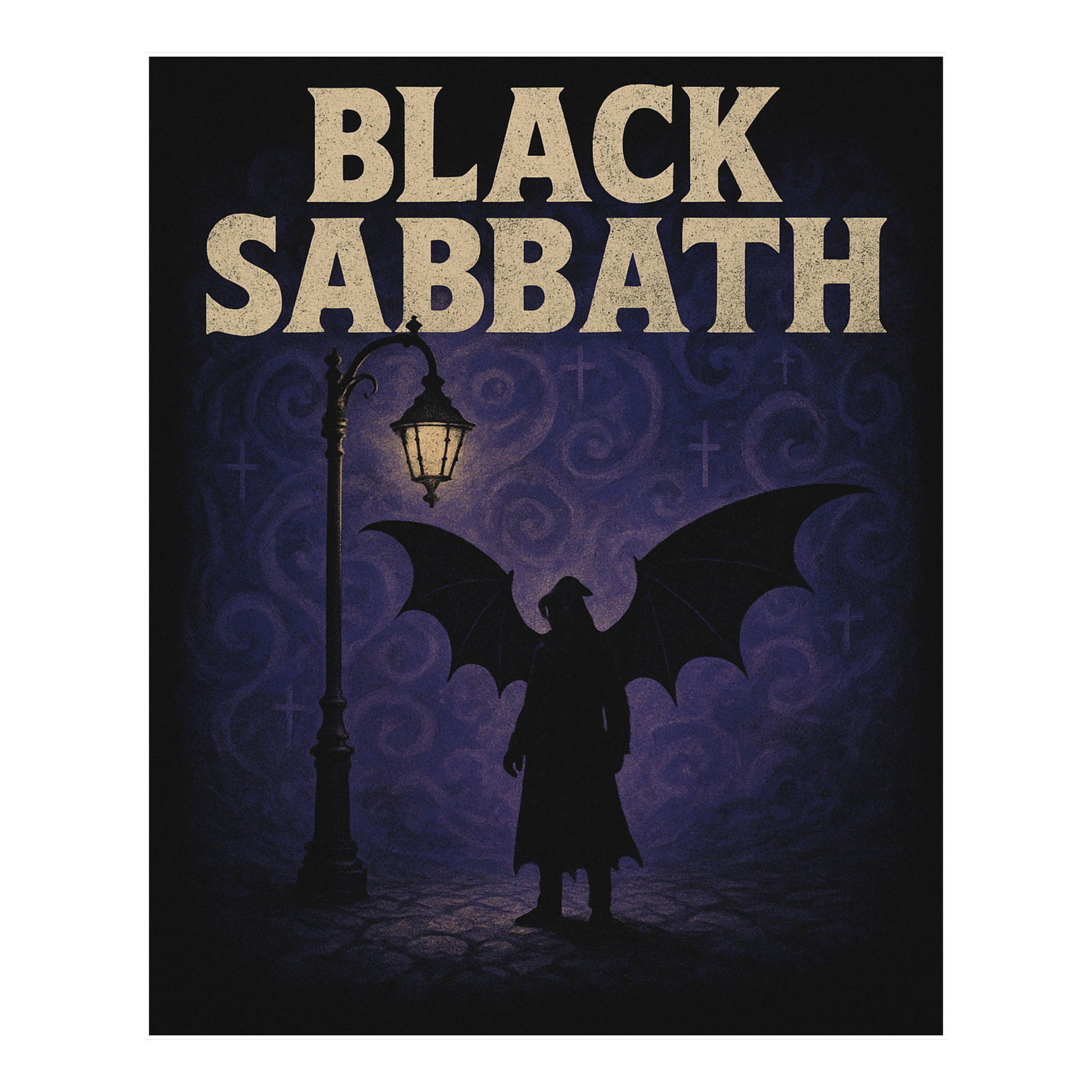 The Black Sabbath Paranoid Shadows T-Shirt – Black captures the dark, iconic aura of one of the most legendary heavy metal bands of all time. Featuring a striking silhouette beneath a haunting streetlamp, complete with bat wings and a swirling purple-blue psychedelic backdrop, this shirt embodies the mystery and doom-laden energy of Sabbath’s music.